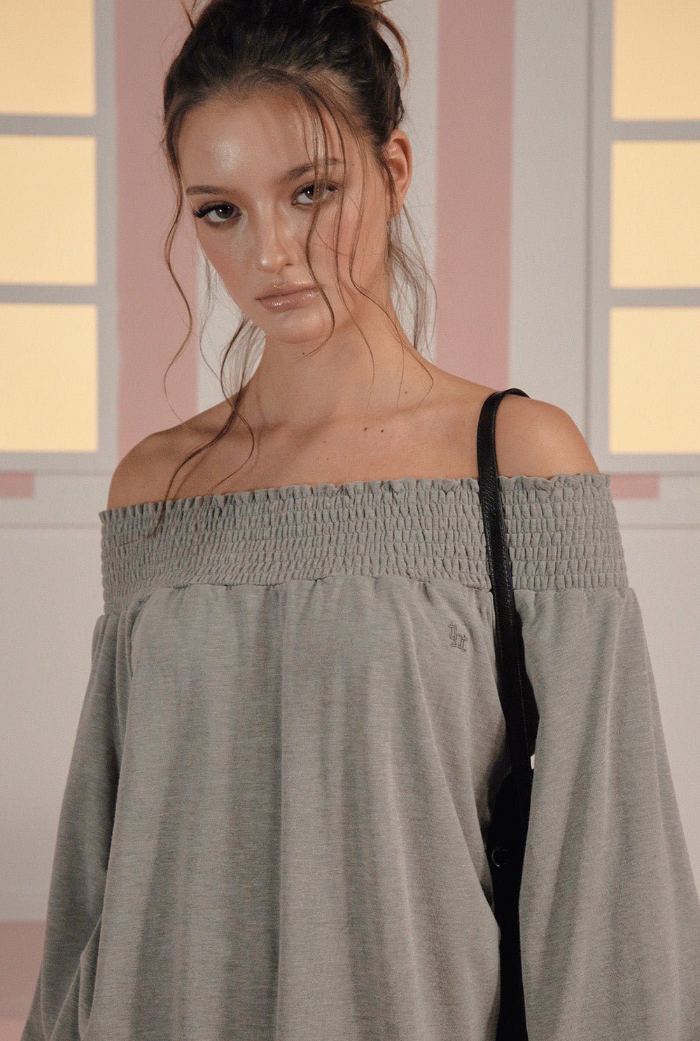 - Smocked off-shoulder neckline