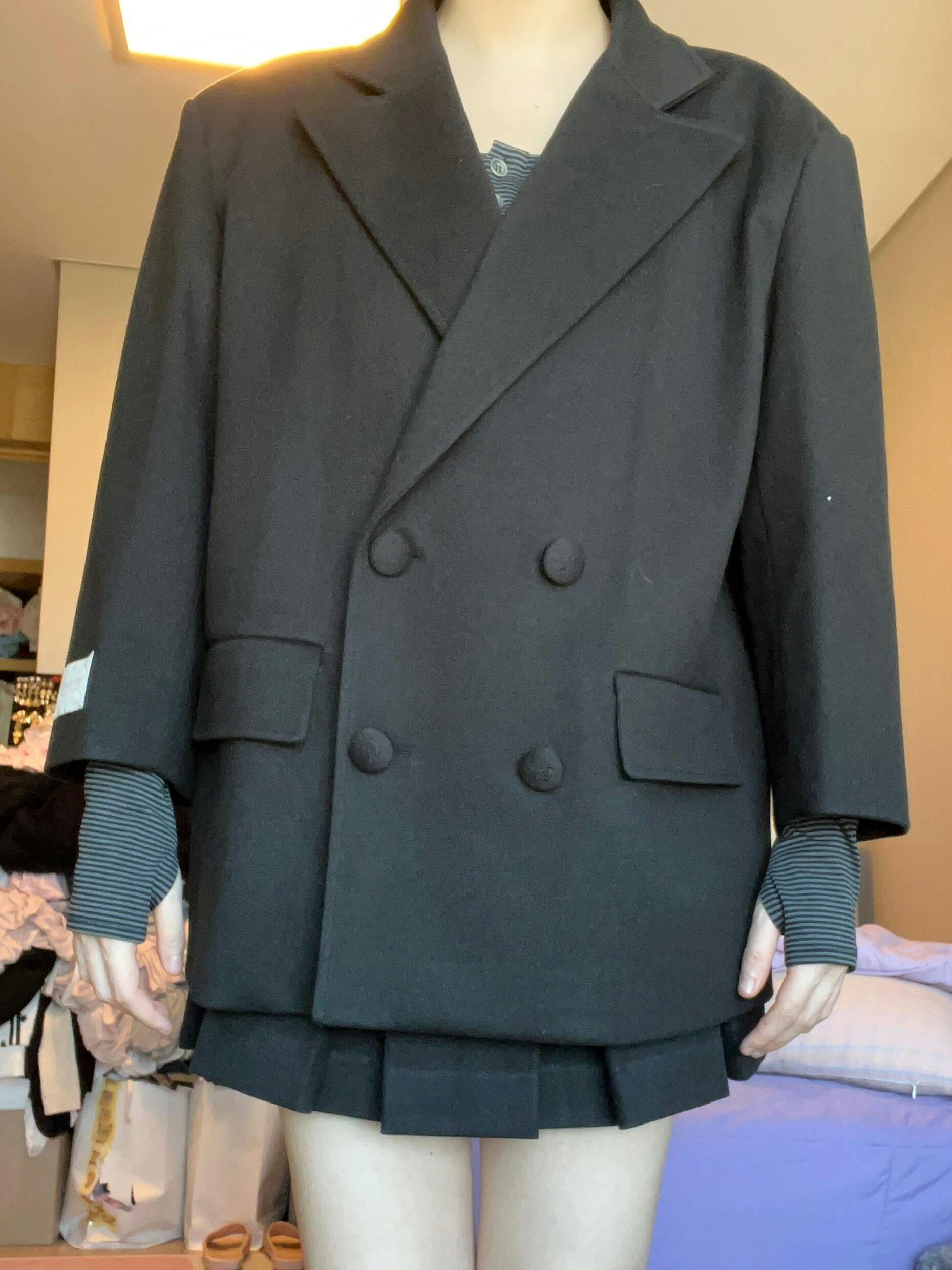 헤이즐 셋업 작년 가을에 고민하다가 결국엔 못샀는데 이번에 블랙 프라이데이 세일 품목들 보다가 반값에 파이널 세일로 판매해서 아묻따 기회다 싶어서 구매했어요! 자켓이 많이 오버핏이라 평상시에 쓰탐 옷들 다 미듐 시키는데 스몰이 품절이라 이번에도 결국 미듐을 선택했지만.. 왜 고민했나 싶을 정도로 너무 가을 특유의 모던한 느낌과 빈티지함이 낭낭하게 느껴지는 셋업이었어요🥹 모델컷처럼 작년에 나온 피피 스트라이프 탑이랑 매치하니까 너무 예뻐요! 세트인 모자는 품절이지만 중고 거래로 매물 찾아서 구매해야겠어요🤭