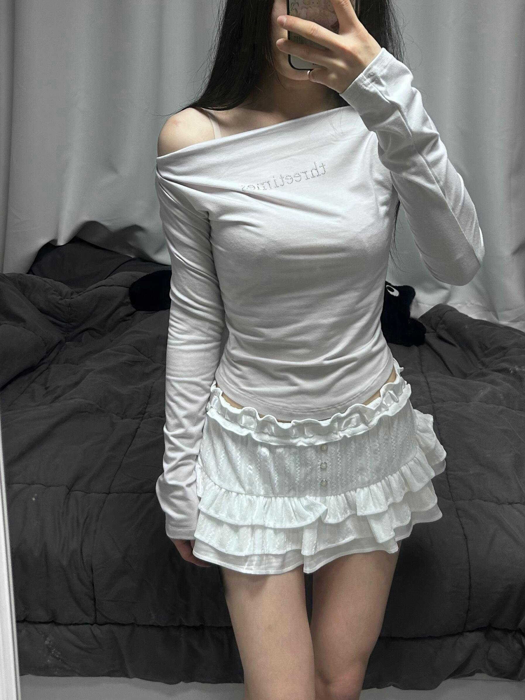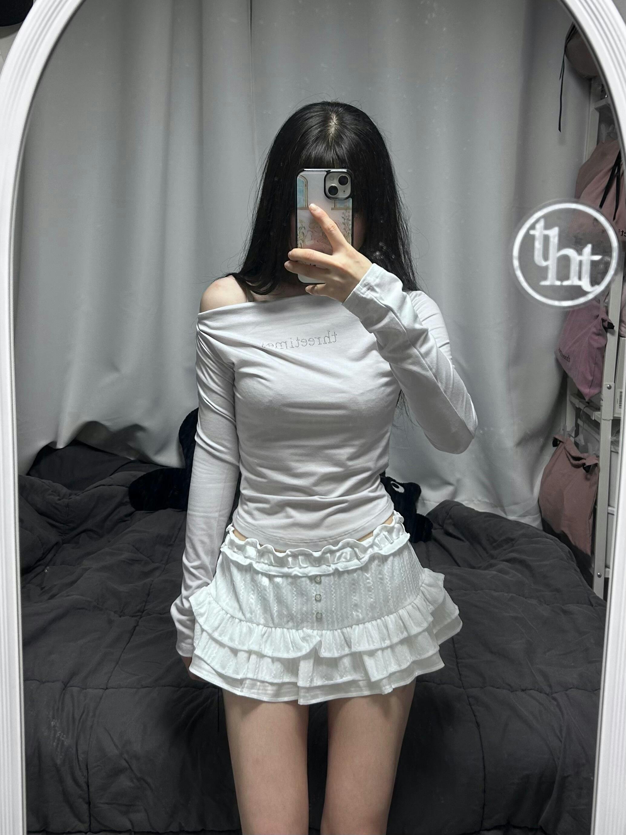 넥 라인때문에 고민했는데 모델컷처럼 정핏으로 입어도 크게 답답함없이 예뻤고 사장님처럼 살짝 원숄더로 입어줘도 그거대로 예뻤어요😍생화이트나 아이보리가 아니라 컬러 네임처럼 쿨한 그레이쉬한 컬러라서 더 매력있고 가을 무드에 어울리는 것 같아요🥺컬러감은 누끼컷이 가장 정확한 것 같아요!바스트가 있는 편이라 미듐 사이즈 항상 착용하는에 편하게 잘 맞고 슬림핏인데다 항상 쓰탐 긴팔 티셔츠들은 소매도 길어서 팔뚝살도 커버해주고 여리여리해보여서 좋아요🩶