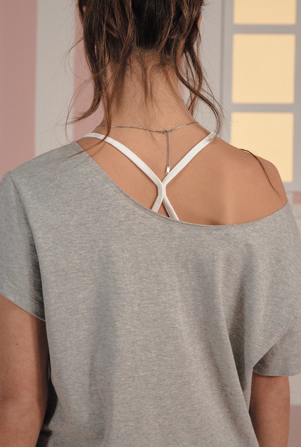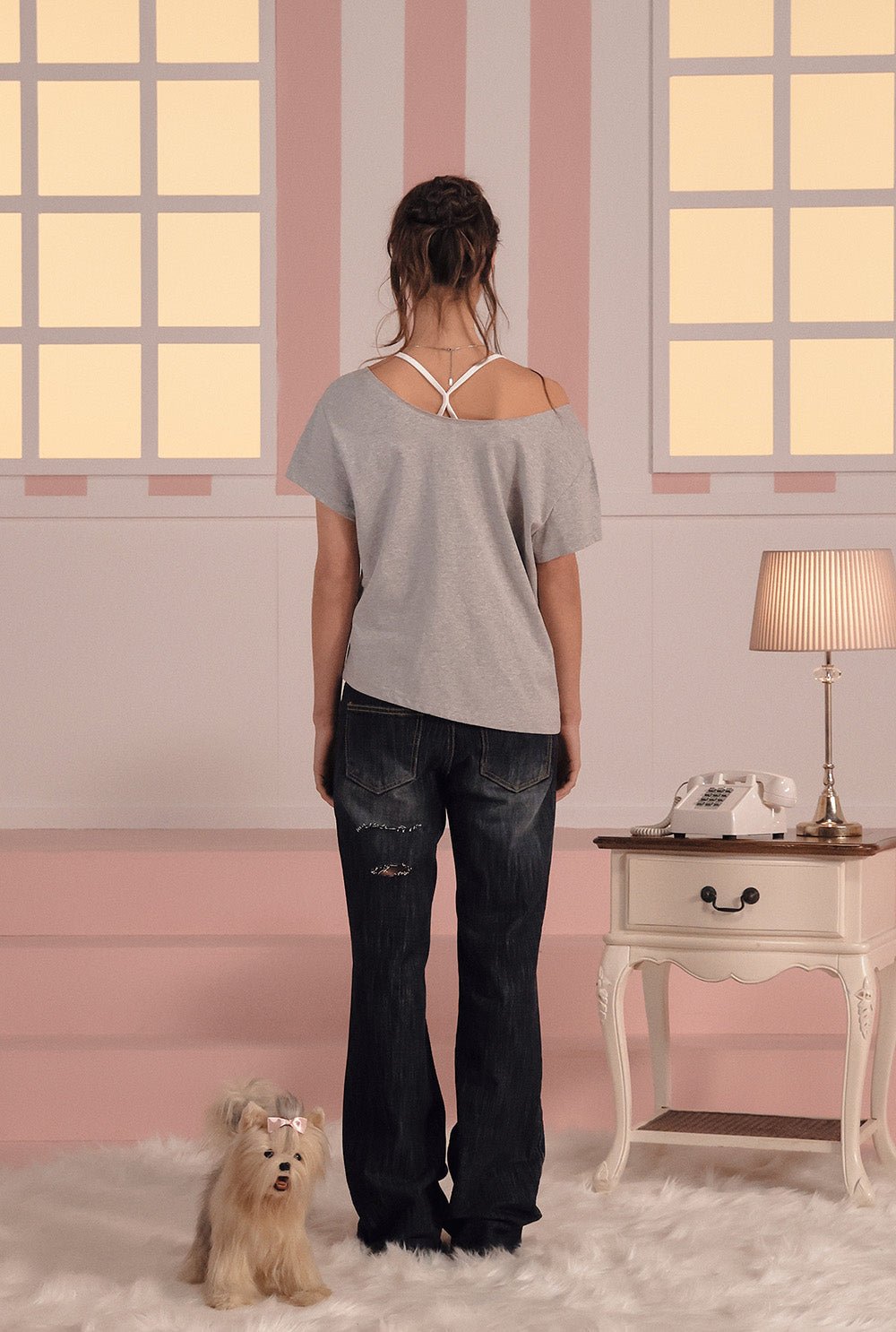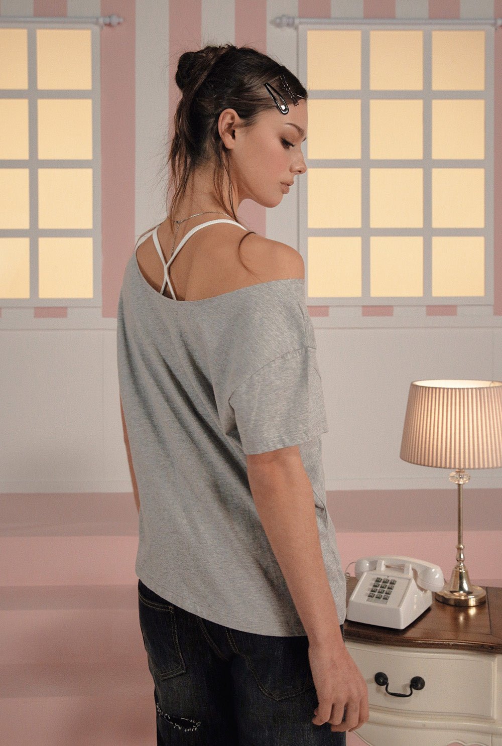 - 스쿠프 네크라인 & 러프한 컷팅 마감