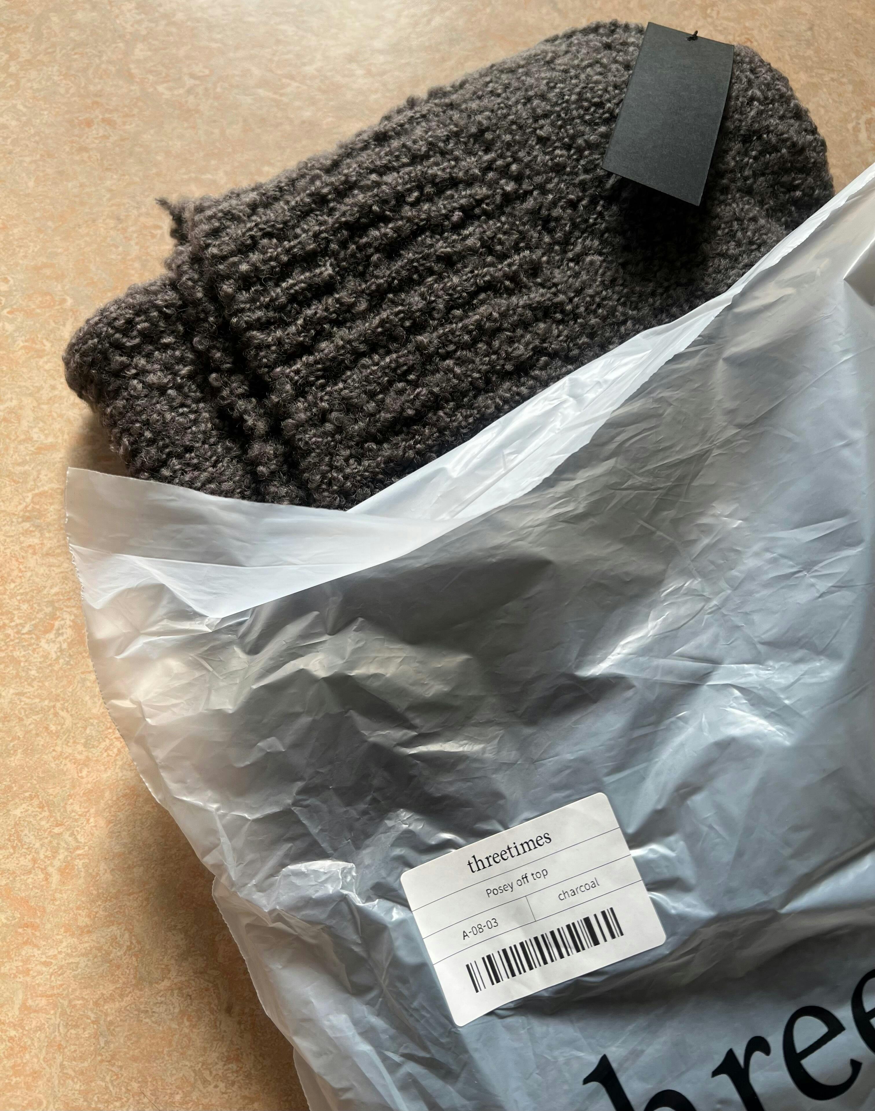 ◦ 니트 편직 과정에서 원사를 연결하는 매듭이 보일 수 있습니다.