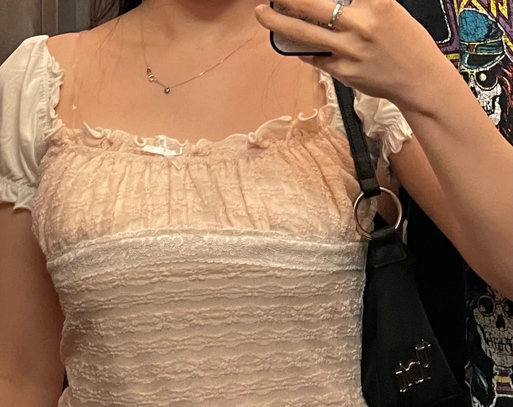 I love this top so much! ^~^ The design of the layered lace, smocked detail, puffy sleeves, and little bows are lovely. You can really feel like a princess straight out of a fairytale in it. I like to change up the mood by wearing the sleeves differently, like off shoulder for a more sexy look or kept up as a princess sleeve for a more mature look. It pairs so nicely with my other THT bottoms like the smocked maxi skirt and cheery skirt <3 I’m gonna wear it a lot in the spring and summer, it’s a timeless design.