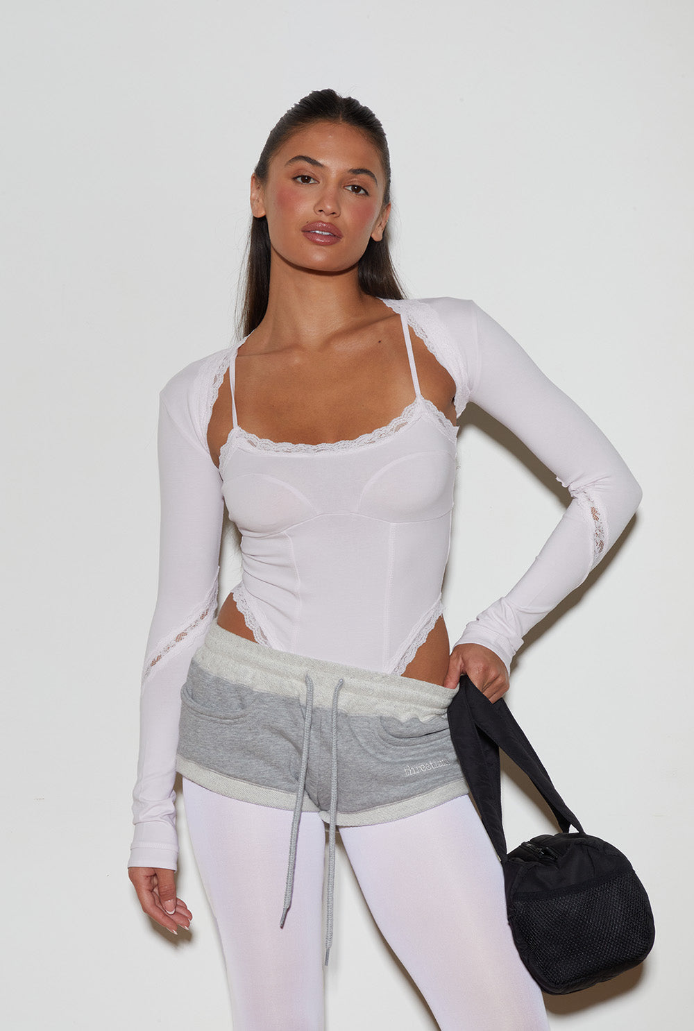 - 사선 레이스 디테일 & 페이크 레이어드 슬리브