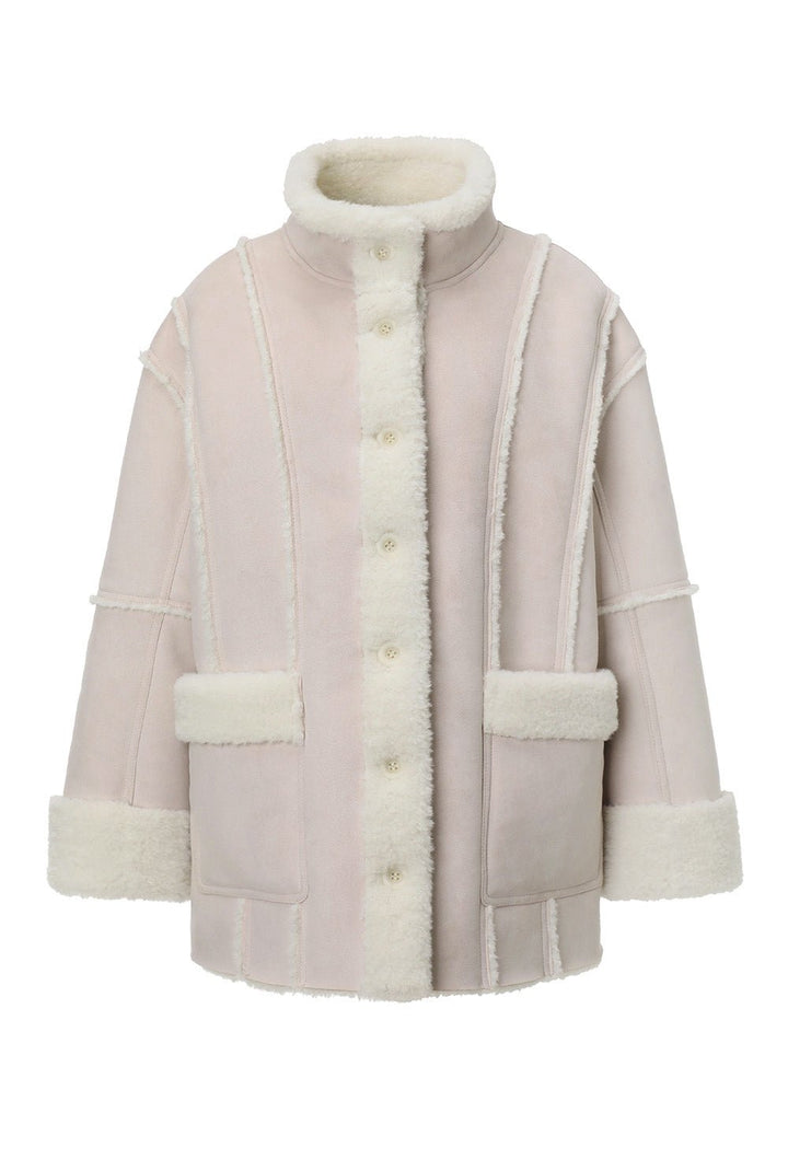 - Paneled lines & faux fur trim