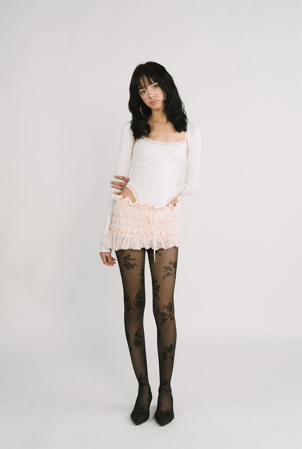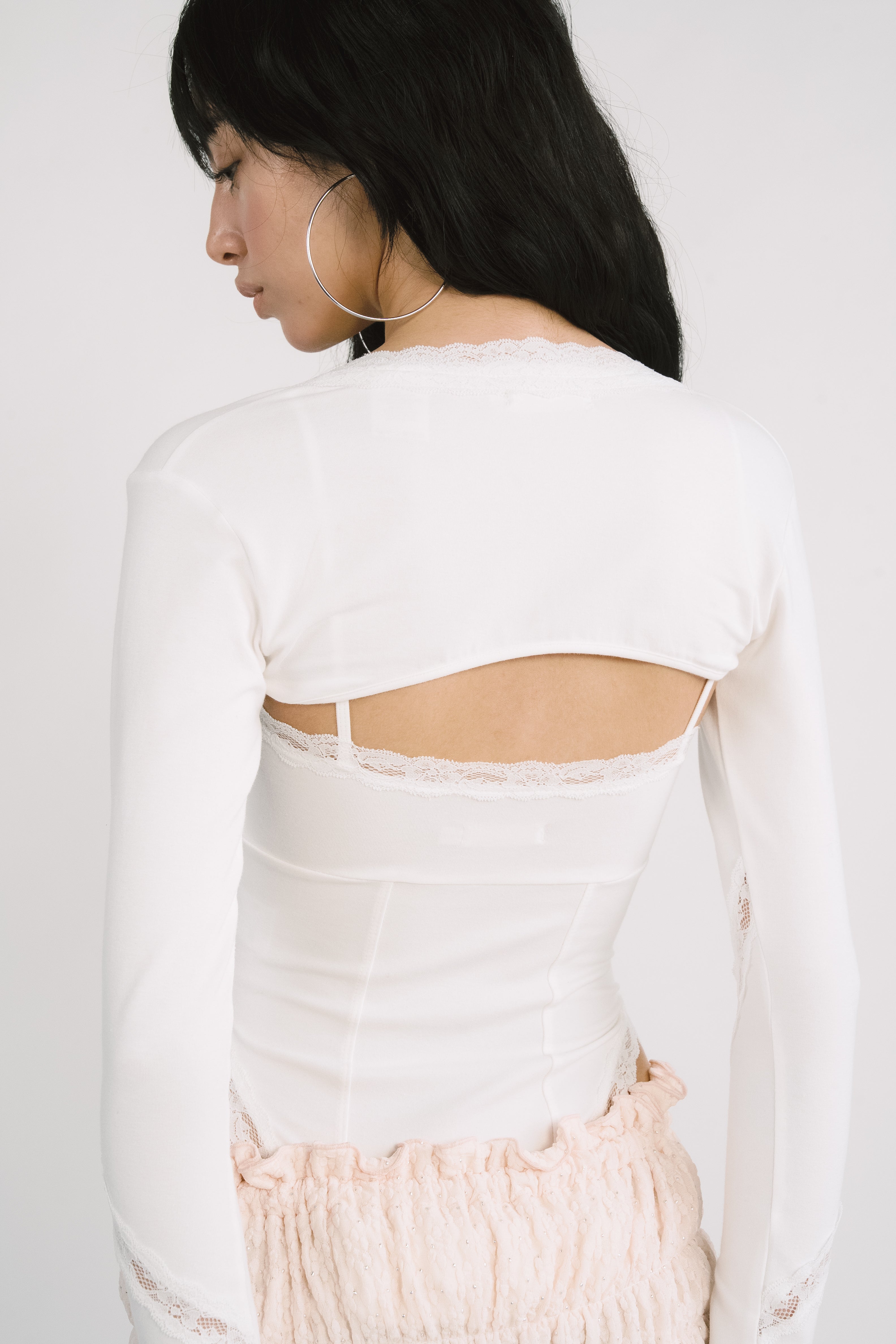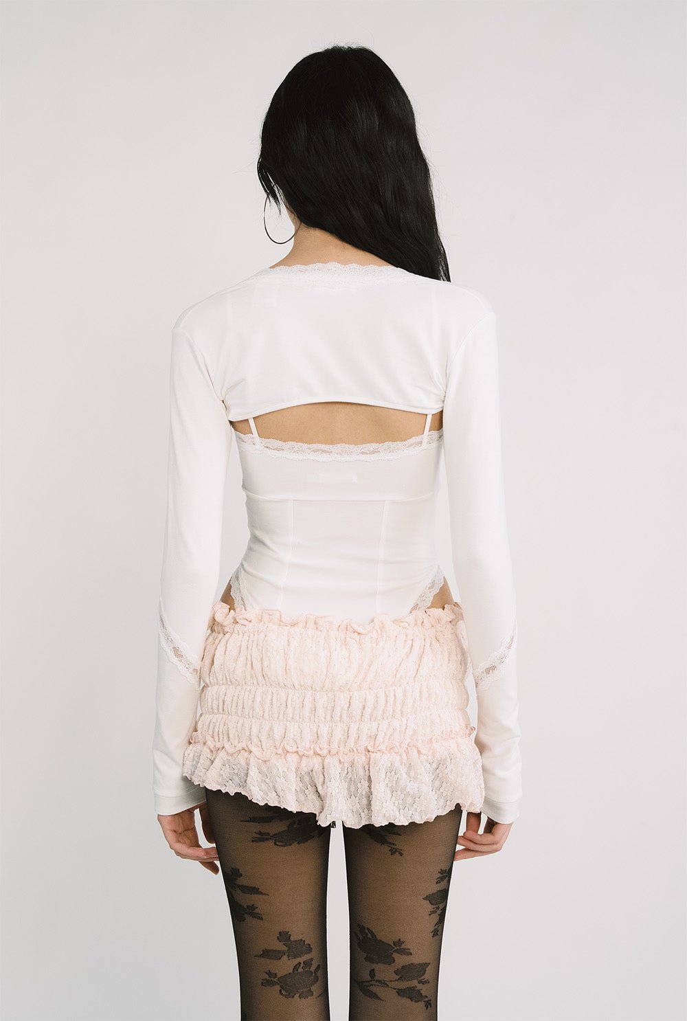 - Diagonal lace detail & faux-layered sleeves