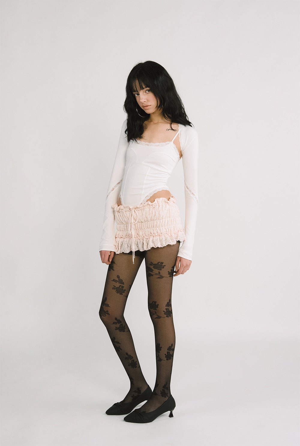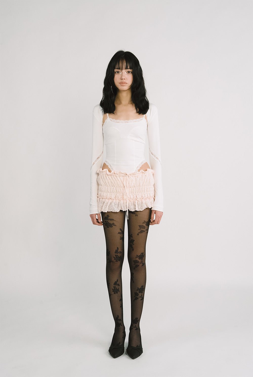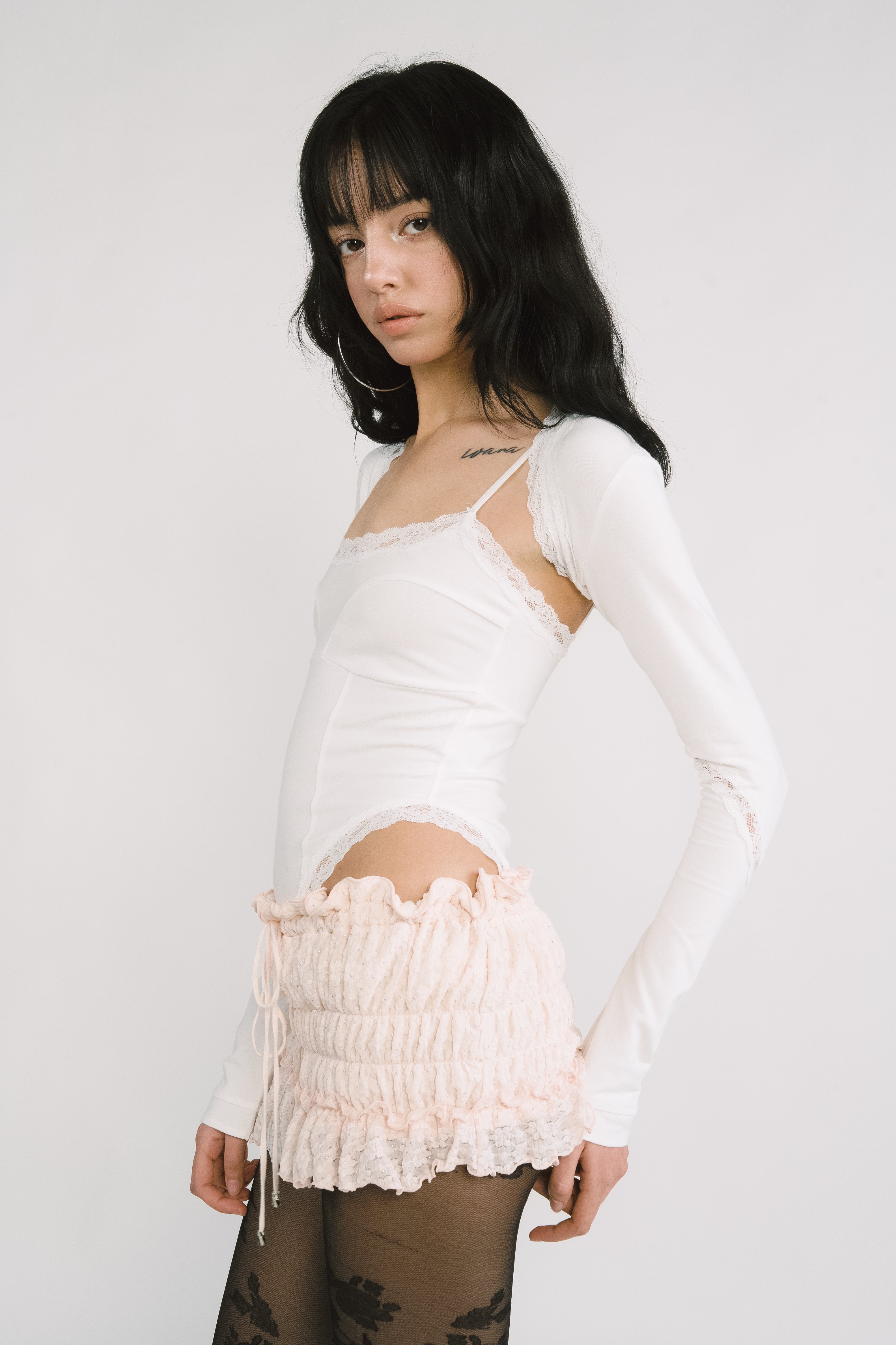 - Double-layered lace opening line